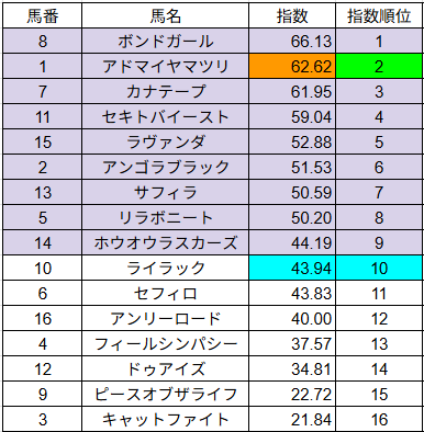 指数の数値が大きい馬ほど、能力の高い馬の認識で大丈夫です。