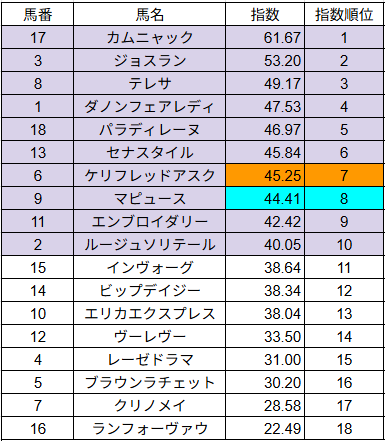 指数の数値が大きい馬ほど、能力の高い馬の認識で大丈夫です。