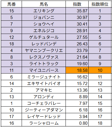 指数の数値が大きい馬ほど、能力の高い馬の認識で大丈夫です。