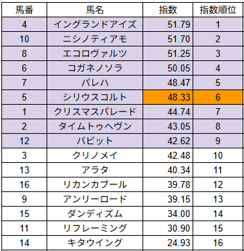 指数は馬の能力を数値化したもので、