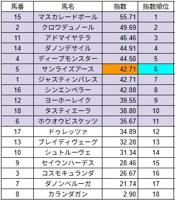 指数の数値が大きい馬ほど、能力の高い馬の認識で大丈夫です。
