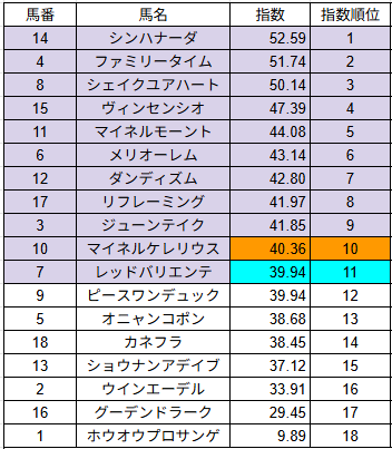 指数は馬の能力を数値化したもので、