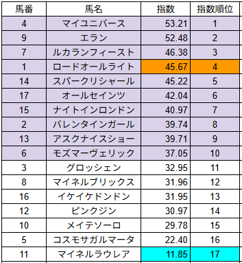 指数は馬の能力を数値化したもので、