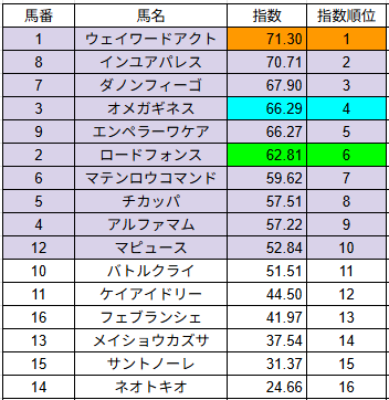 指数の数値が大きい馬ほど、能力の高い馬の認識で大丈夫です。
