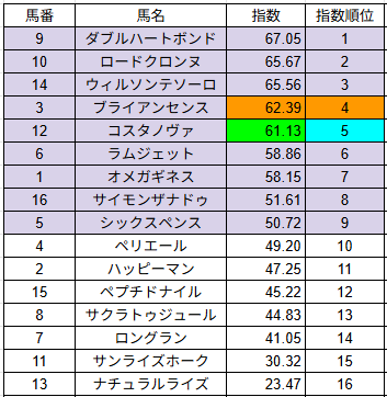 指数は馬の能力を数値化したもので、